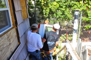 The home we are working on is small. The home owner moved to Staten Island from Brooklyn a few years before Sandy hit. She lost a gazebo and a car in the flooding that covered most of her home. Although, the gazebo may have saved her house from being totally destroyed. She is raising five grandchildren and dealing with the ill health of the grandchildren’s mother.