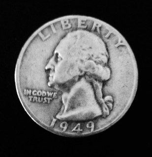 A couple of weeks ago, this 1949 quarter emerged when we converted my loose change into an Amazon gift card at our local Coinstar machine. Besides being old, this quarter is of value because it is 90% silver. Until 1974, many US coins contained some silver. Quarters stopped being made from silver in 1965. The internet tells me this quarter is worth between three and four dollars. For me, for a brief moment, it was worth a lot more.